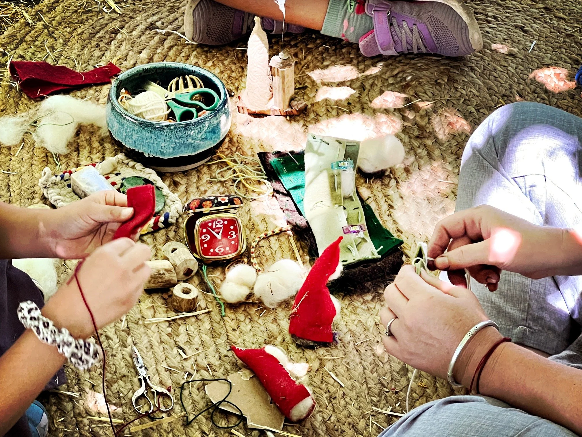 Our enrichment program focuses largely on nature connection and developing a wide range of handwork skills, based on age/skill appropriateness. An example of the handwork and ancestral skills we explore in depth include sewing, knitting, crochet, natural dye, pattern making and construction, weaving, woodworking, knot-tying skills and more.